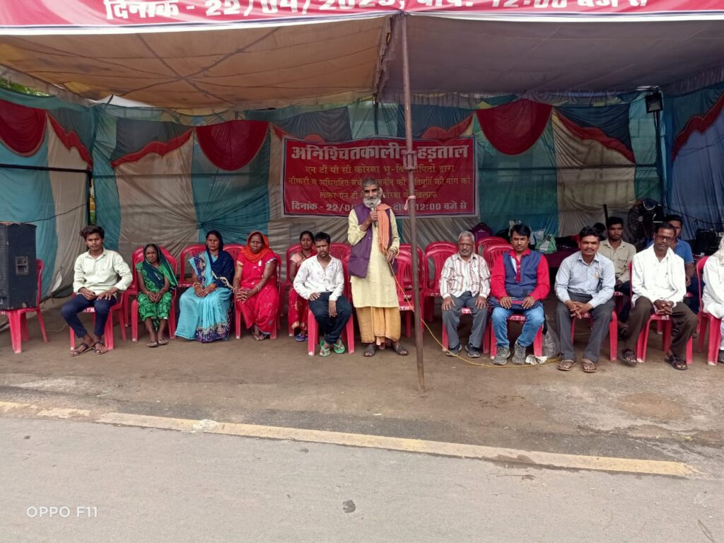 प्रखर राष्ट्रवाद न्यूज कोरबा:-एन टी पी सी कोरबा के भुविस्थापित मुआवजा व क्षतिपूर्ति की मांग को लेकर पिछले 70 दिनों से अनिश्चितकालीन धरने पर बैठे हुए हैं भू विस्थापित परिवारों को एनटीपीसी प्रबंधन द्वारा कई बार पत्र दिया गया लेकिन इनको सिर्फ आश्वासन ही दिया गया इनकी मांगों को अमल में नहीं लाया गया जो अपनी जायज मांगों को लेकर 22 अप्रैल से आईटीआई चौक कोरबा में अनिश्चितकालीन धरना पर बैठे हुए हैं।