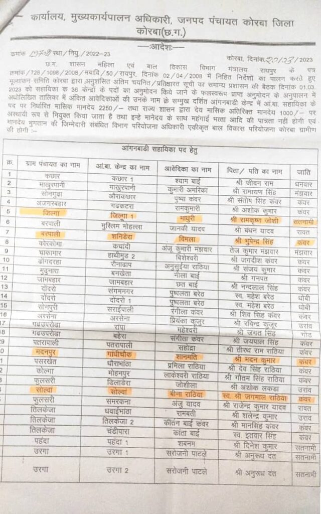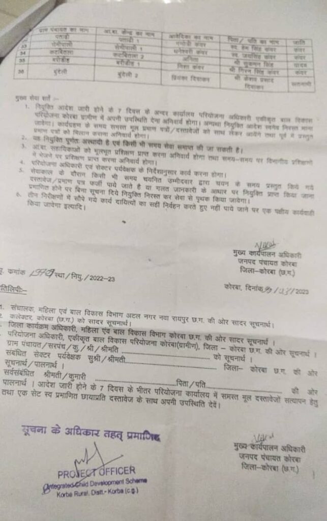 इससे आप अंदाज़ा लगा ही सकते हैं कि क्यों 2019 के सहायिका व कार्यकर्ता के नियुक्ति रुकी हुई थी। नए मुख्य कार्यपालन अधिकारी (CEO) को भी महिला बाल विकास अधिकारी ने मोटी रकम का हिस्सेदार बनाया। जिससे उसकी भ्रष्ट कलम की रफ़्तार योग्य अभ्यर्थी की योग्यता की धज्जी उड़ाई। अगर ऐसा होता रहा तो योग्यता का योग्य खत्म हो जाएगा और शैतानी राज़ शुरू हो जाएगा।