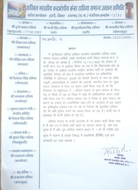 प्रखर राष्ट्रवाद न्यूज़। छत्तीसगढ़ में चुनाव का माहौल इसकदर गरमाया है कि आय दिन प्रत्याशियों के ऊपर आरोप प्रत्यारोप लगते ही रहते हैं। इसी चुनावी गरमा गरम में रामपुर विधानसभा कांग्रेस प्रत्याशी फूलसिंह का भी सम्मान को धूमिल करने की कोशिश की जा रही है। जिसका मुनाफ़ा विपक्षी भरपूर उठा सके जिसका नतीजा विधानसभा चुनाव में नज़र आए। इन आरोपों को अखिल भारतीय चन्द्रवंशी राठिया कंवर समाज ने किया विरोध और खंडन करते हुए दोषी के ऊपर थाने ने जांच हेतु रिपोर्ट दर्ज कराने को कहा। रामपुर विधानसभा के क्षेत्रवासियों का कहना है कि हम हर बार चुनाव में हमारे सम्मान से प्रतिनिधित्व ही मांग करते लगभग 35 वर्ष हो जुड़े हैं जब कि हमारी जनसंख्या लगभग 65% है। इसके बावजूद हमें हर चुनाव से आश्वासन दिया जाता है। जिससे कांग्रेस की हार का सामना करना पड़ता है। ज्ञात हो कि वर्तमान समय मे प्रत्याशी चयन सरिया समाज के भावनाओं को ध्यान मे रखते हुए फूल सिंह राठिया जो कि हमारे समाज को आगे ले जाने में महत्वपूर्ण भूमिका रहती है। जिससे युवा वर्ग काफी प्रभावित है। इनके द्वारा समाज के लिए किये गए सहयोग अन्य समाज से उदाहरण योग्य है, जिसका प्रभाव अन्य सभी समाज अनुकरण कर शिक्षा, स्वास्थ्य के प्रति उत्साहित होकर काम कर रहे है। फूल सिंहे सब के साथ बच्चे, बूढ़े और जवानों के साथ तथा महिलाएं भी कदम से कदम मिला कर चल रही है। जिसका प्रत्यक्ष उदाहरण जिला पंचायत मे देखने को मिला। भाजपा द्वारा विभिन्न प्रकार के हथकुठंडे अपनाने के बावजूद फूल सिंह राठिया की बहू कमला राठिया को प्रचण्ड मतों से विजयी बना कर कांग्रेस को समर्थन देकर जिला पंचायत अध्यक्ष बनाया गया / साथ ही साथ राठिया समाज में एक महत्वपूर्ण बैठक का आयोजन कर अफवाह फैलाने वाले लोगों को आगाह करते हुए कहा कि वो लोग सावधान हो जाएं जो हमारे समाज को तोड़ कर आगे बढ़ते है। ऐसे लोगों की समाज मुह तोड़ जबाब देने को तैयार है।