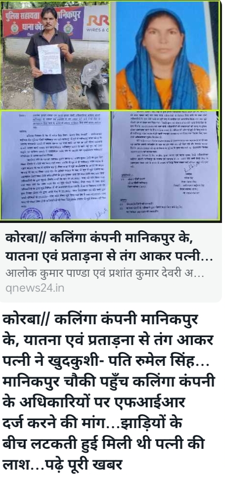 प्रखर राष्ट्रवाद न्यूज़। कुछ महीने पूर्व कलिंगा कंपनी मानिकपुर ने भी अपनी छवि का प्रदर्शन किया है। मानिकपुर कोरबा के भू विस्थापितों में से एक रूमेल सिंह जो कि अपने रोजगार के लिए कलिंगा कंपनी के चक्कर काट काट कर थक गया। जिसके फलस्वरूप घर में आर्थिक स्थिति पूर्ण रूप से चरमरा गई। रुमेल सिंह की पत्नी ने कलिंगा के वादा खिलापी कार्यों से कलिंगा कंपनी के अंदर ही अपनी ईहलीला समाप्त कर ली। ताकि उसके पति को रोजगार मिल सके। और इस घटना से कलिंगा को किसी भी प्रकार का कोई असर नहीं हुआ। दूसरा कल की जो घटना जिसमे स्पष्ट रूप से दिख रहा है कि जयपाल सिंह हाइवा के चपेट में आने से मौके पर ही उसकी मौत हो गई। जो वीडियो में स्पष्ट भी दिखाई दे रही है। आखिर जिसने एसईसीएल को रात दिन काम करके आगे बढ़ाते हैं उसकी मौत का कोई बहाना बनाए ये बात जरा हज़म नहीं होती। दरअसल एसईसीएल को अपने काम से मतलब है न कि किसी के मौत से।