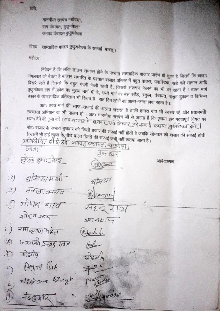 प्रधानमंत्री नरेंद्र मोदी का यह तीसरा कार्यकाल चल रहा है, प्रथम कार्यकाल में उनके द्वारा स्वच्छ भारत अभियान का शुभारंभ किया था , जो की किसी प्रधानमंत्री द्वारा पहली बार इस तरह की महत्वपूर्ण चीज पर ध्यान दिया गया। हमारा देश स्वच्छ रहे इसी लिए सरकार द्वारा बजट में लाखों खर्च भी किया जाता है। फिर भी उसका कोई असर नहीं दिख रहा है, खासकर ग्राम पंचायत कुडूमकेला में, जो की घरघोडा विकासखंड का सबसे पुराना और बड़ा पंचायत में आता है । आज वहा के बाजार परिसर में इतनी गंदगी फैली रहती है, फिर भी उस गंदगी को जिम्मेदार लोग आंख मूंद कर देख रहे हैं। उसी गंदगी वाले रास्ते से रात और दिन स्कूली बच्चे, ग्रामीण और बुजुर्ग लोग,ग्राम पंचायत के जन प्रतिनिधि सरपंच, सचिव,पार्षद, बिडिसी आदि सभी का आवाजाही है लेकिन बाजार परिसर में फैले इस गंदगी को नजर अंदाज कर रहे हैं। विगत कई वर्षों से पंचायत द्वारा बाजार परिसर के इस गंदगी को साफ करने का ठेका भी दिया गया है, जिसका कोई मतलब नहीं निकल रहा है। इसी रास्ते से छोटे-बड़े स्कूली बच्चे स्कूल जाते है और बस स्टैंड, बाजार, मेन रोड, दुकान, पंचायत होने के कारण ये गांव का मुख्य मार्ग भी है लेकिन इसी गंदगी भरे रास्ते से लोगों को गुजरना पड़ता है। बरसात में तो हालात और ज्यादा खराब है चारों तरफ गंदगी फैली हुई है,सब्जी फल फूल, कचड़े के सड़ने के बाद बुरी तरह से दुर्गंध देने लगते हैं, ऐसी स्थिति में तो इस रास्ते से गुजरना भी मुश्किल हो जाता है, लेकिन फिर भी पंचायत के जनप्रतिनिधि आंख मूंद कर सो रहे हैं, जबकि ग्राम सभा में भी इसके लिए कई बार आवेदन किया गया था। पंचायत द्वारा एक ठेकेदार को इस बाजार की साफ सफाई करवाने के लिए ठेका भी दिया गया है, बाजार के दुकानदारों से हजारों वसूली किया जाता है, फिर भी हमेशा गंदगी फैली रहती है । इस संबंध में सरपंच और जनपद पंचायत अधिकारी को भी कई बार आवेदन दिया गया लेकिन कोई काम नहीं आया । आपको बताना चाहते हैं कि इस प्रकार गंदगी रहेगी तो हमारा गांव कैसा दिखेगा जरा कल्पना कीजिए। कई बार इस संबंध में जनपद पंचायत में भी पत्र व्यवहार किया गया लेकिन किसी प्रकार की कार्रवाई अभी तक नहीं हुई । इस संबंध में सरपंच, सचिव की भी घोर लापरवाही सामने आ रही है। ग्रामीणों का मांग है कि जल्द से जल्द सफाई की जिम्मेदारी महिला समूह को दिया जाए ताकि कुडूमकेला के बाजार परिसर की सफाई सुचारू रूप से हो और गांव स्वच्छ और सुंदर दिखे। जिस प्रकार से प्रधानमंत्री नरेंद्र मोदी द्वारा स्वच्छ भारत अभियान के लिए अपील किया गया था उसका असर किसी भी नगर, गांव और शहर में देखने को नही मिल रहा है।