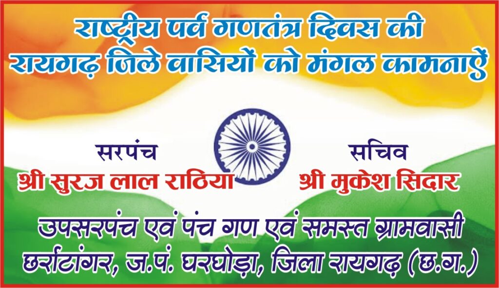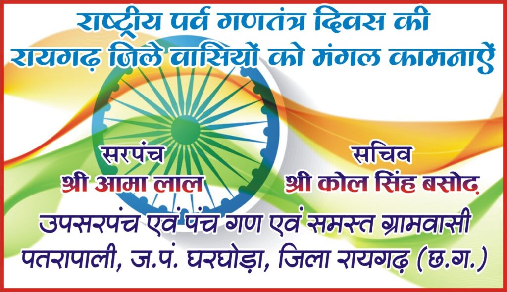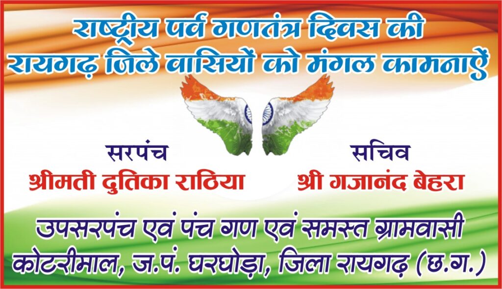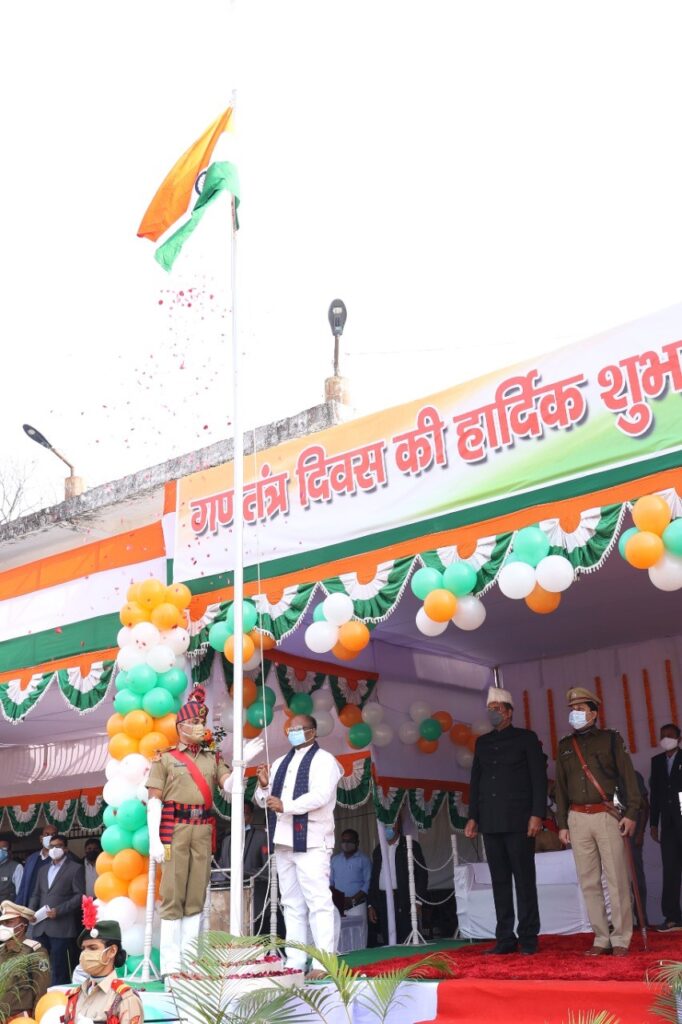 26 जनवरी 2022/रायगढ़ में गणतंत्र दिवस का पर्व हर्ष एवं उल्लास के साथ मनाया गया। मिनी स्टेडियम में आयोजित मुख्य समारोह में उपाध्यक्ष छत्तीसगढ़ विधानसभा श्री मनोज सिंह मंडावी ने ध्वजारोहण किया।
